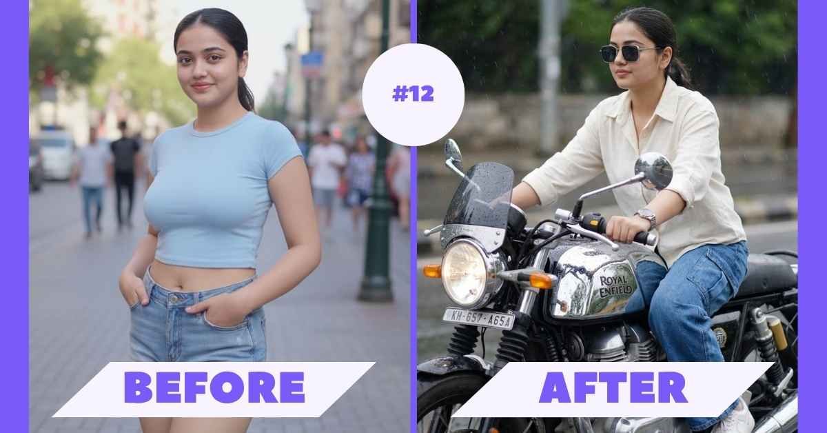 In this blog, you will get a ready-to-use Gemini AI image prompt and ChatGPT image prompt that helps you create a photo-realistic Royal Enfield bike shot in a rainy environment — while keeping your face exactly the same. No smoothing, no beautification, no fake skin — just real identity and natural photography.